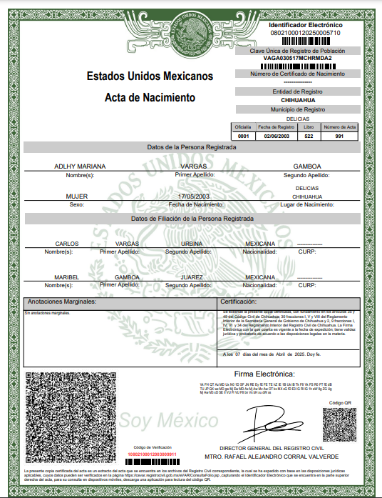 FORMATO CORECTO ACTA DE NACIMIENTO